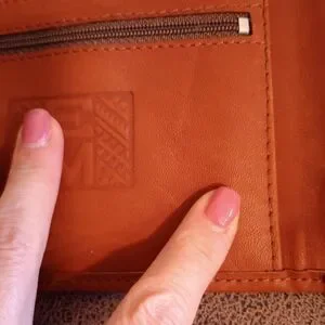 So many pockets! Exquisite condition. Approximately 5x8.