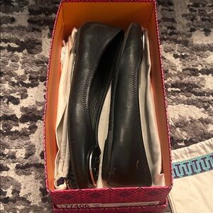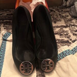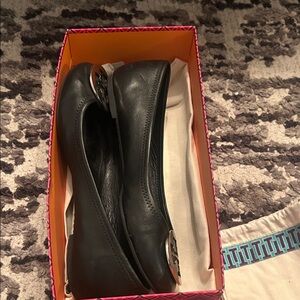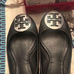 Tory Burch Black Flats with Silver Emblem
