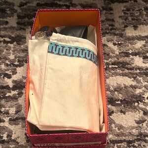 Elegant black flats featuring a striking silver emblem. Ideal for versatile styling. Flaws pictured still functional