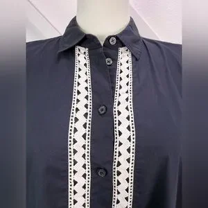 Kate Spade Broome Street Black Cotton Lace Trim Shirt Dress Size Small