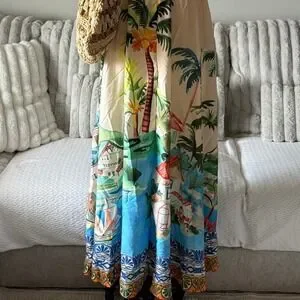 SHEIN Tropical Palm Tree Maxi Dress Halter Neck Resort Wear Size XS