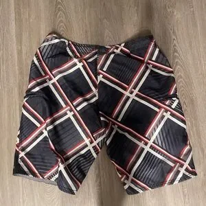 Adidas Men's Swim Shorts - Black and Red Checkered