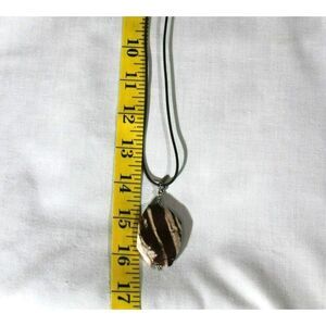 Jasper Pendant Long Necklace Brown White Pinkish Color Stone Silver Tone