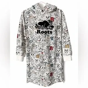 Charming hoodie dress by Roots. Features a lively cartoon print. Perfect for casual wear.