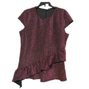 Parallel Metallic Shimmer Blouse Size S Asymmetrical Ruffle Party Top Burgundy