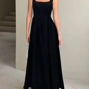 Black Elegant Women's Sleeveless square neck Fitted Dress