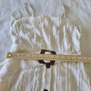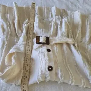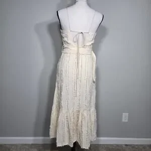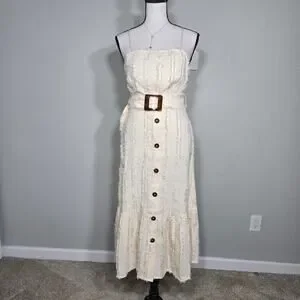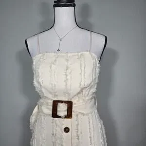 Moon River Cream Fringe Midi Dress XS Belted Button Front Coquette Bridal Resort