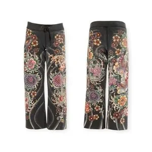 Rare: Y2K Lucky Brand ❀ Embroidered Asian Koi Butterfly Sweatpants ❀ Black ❀ L
