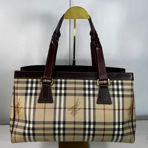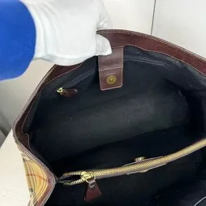 Burberry Nova Check Tote Bag Vintage House Check Canvas Leather Shoulder Bag