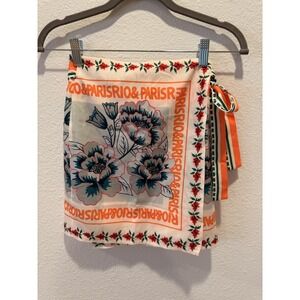 Commense Skirt Womens Small Multicolor Floral Satin Wrap Tie Mini Scarf Print