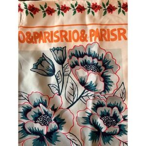 Pattern: Oversized floral motif with rose border and repeated "RIO&PARIS" text accents.
