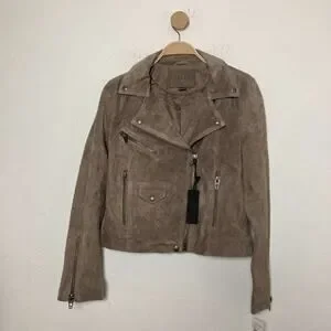 NEW BLANKNYC Women's Taupe Leather Long Sleeve Collared Hooded Moto Jacket Size S