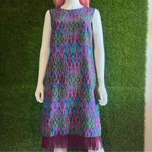 Vintage Missoni Silk Shift Dress Pink Green Blue Fringe Hem