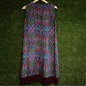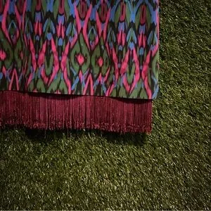 Length (high shoulder to hem): ~36.5” (main fabric), ~40” (total length w/ fringe)