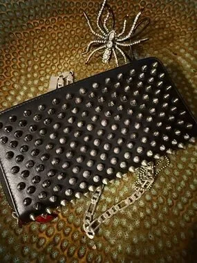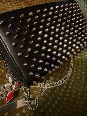 Christian Louboutin Panettone Black Leather Silver Spike Wallet