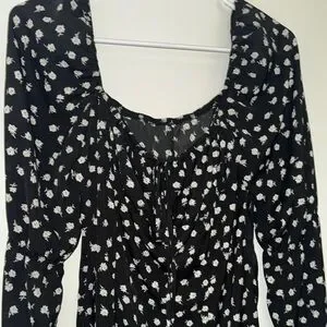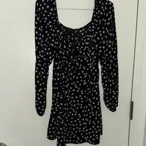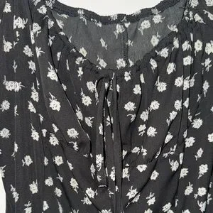 This elegant black floral dress is perfect for any occasion. The delicate floral pattern adds a touch of sophistication. Ideal for both casual and formal events.