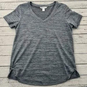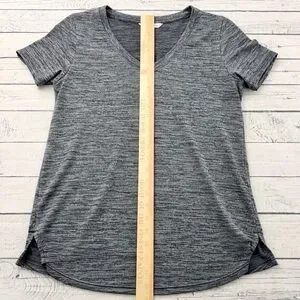 Athleta Top Women M Gray Space Dye Breezy Scoop V Neck Cap Sleeve Gym Shirt