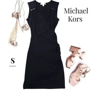 🔴 Michael Kors Black Poly Rouged Side Slip Dress sz S