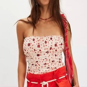 Free People NWOT Scottie Tube Top in Cream w Red Floral & Polka Dot Print sz SML