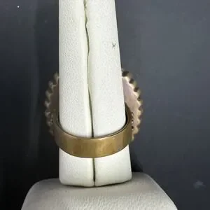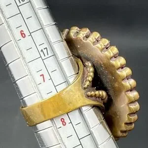 The overall design has a vintage or Southwestern feel, and the ring itself is quite substantial in size—likely meant to be a standout accessory.