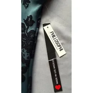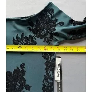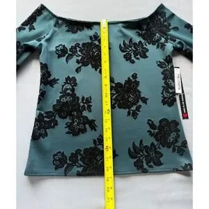 Philosophi L A Top Women Large Green Black Floral Velvet Burnout Off Shoulder