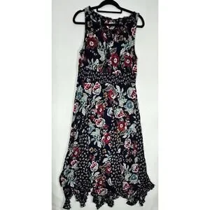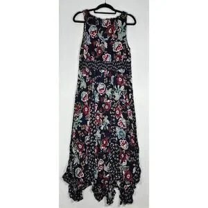 Bila Maxi Dress Women's XL Multi Floral Smocked Waist Tie Front Handkerchief Hem