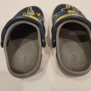 Introduce your little superhero to the world with these rare Crocs Batman superhero sandals. Designed with a vibrant blue, yellow, and black color scheme, these sandals are perfect for adding a touch of fun and excitement to your child's footwear collection. Unfortunately, they were never used as your child outgrew them too fast.