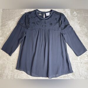 Anthropologie Sheer Lace Blouse Dark Blue/Black Size 12 Large Vanessa Virginia