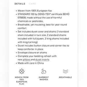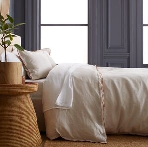 NWT- Quince European Linen Embroidered Duvet Cover & Shams! King/ Cal King(726)
