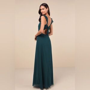 Lulu's Delightful Loveliness Emerald Green Ruffled Tie-Back Maxi Dress NWT