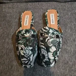 Steve Madden Women's Embroidered Floral Loafers Sz 8 Green Black