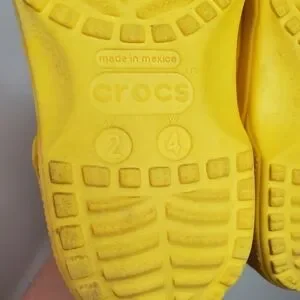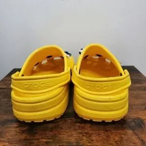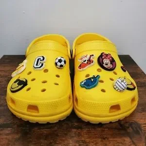 Yellow CROCS womens size 4 mens size 2. Gently worn. Lots of life left. They come with extra accessories which are Disney characters and sports balls. Garden. Hiking. Camping. Fishing. Boating. River Shoes. Streetwear.