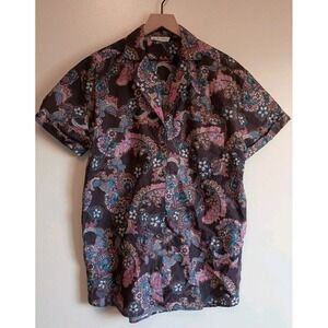 Free People We The Free oversized purple multicolor paisley button down shirt Sz M.