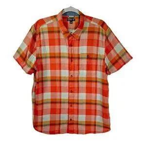 Toad & Co Cuba Libre Shirt Men’s Large Orange Plaid Organic Cotton Button Front