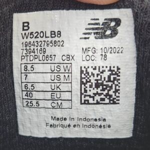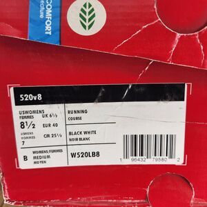 New Balance 520 v8 Womens Sz 8.5 Black White Running Gym Sneakers Shoes W520LB8