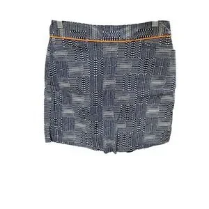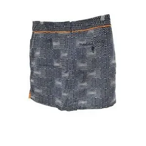 Stylish printed mini skort, perfect for adding a touch of personality to your wardrobe. It features a distinctive geometric pattern in blue and white, complemented by a subtle orange trim at the waistband. This skort is designed for both comfort and style, making it a versatile piece for various occasions. Great for a casual day out, a summer picnic, or a relaxed vacation.