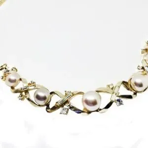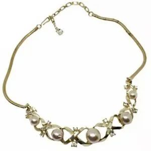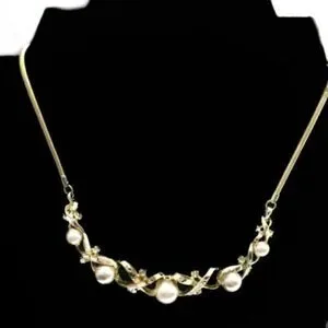 Vtg Corocraft gold pearl rhinestone 14" necklace