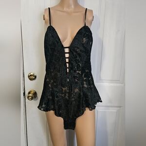 Vintage VICTORIAS SECRET Gold Label Black Burnout Velvet Teddy Lingerie Romper Women's Size Medium
