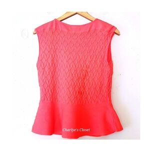 Eva Mendes x NY&Co Coral Argyle Knit Peplum Sleeveless Top L NWT Casual Layer