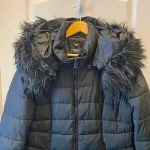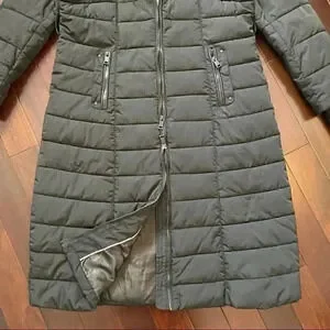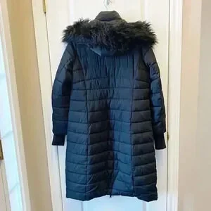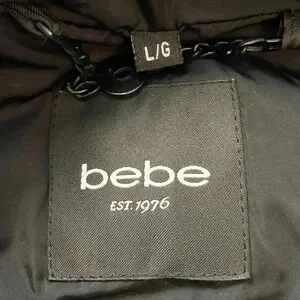 Bebe Long Quilted Winter Puffer Coat Faux Fur Trim Hood Black Size Large