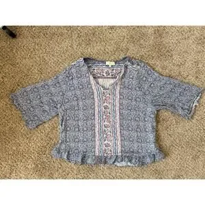 3 for $9 Cyntiha Rowley Blue Floral Boho V Neck Top Ruffle 2X