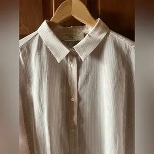 Weekend Max Mara Shirt Button Down Striped White and Light Pink Size 10