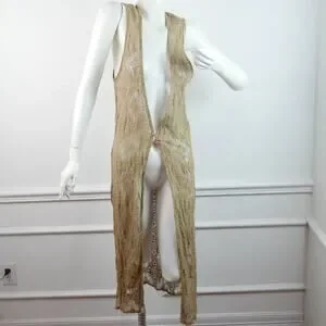 Vintage S M Lace Vest Longline Duster Shabby Chic Boho Hippy Festival Romantic