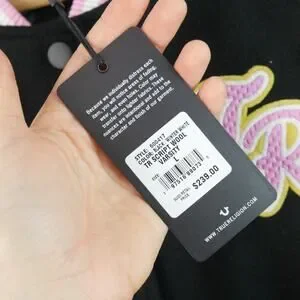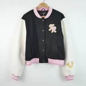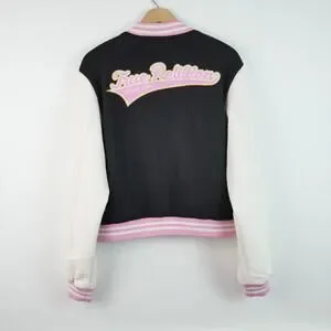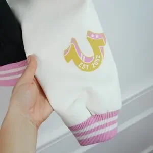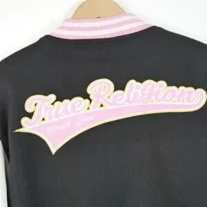 New Women’s True Religion Script Horseshoe Varsity Jacket Size L Pink Academia