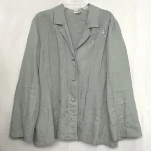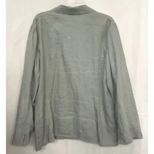 J. Jill Sage Green 100% Linen Embroidered Button Up Jacket Womens XL Lagenlook