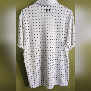 excellent used condition like new. Heatgear. Elevate your style with this sleek white patterned shirt. Perfect for any occasion. shoulder to shoulder 20inches. armpit to armpit 22 inches. length 28 inches.