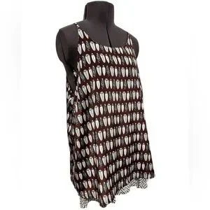 This Porridge for Anthropologie camisole top features a striking brown hue with a boxy silhouette, perfect for a chic and comfortable summer look. The split back design is complemented by a delicate cream print under layer, adding a touch of elegance to its bold style. Ideal for warm weather, this top effortlessly combines comfort and fashion.