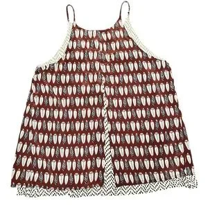 Porridge for Anthropologie Feather Print Layered Split Back Camisole Top Size M