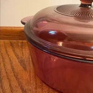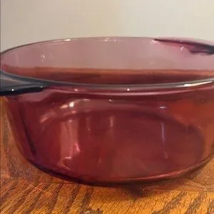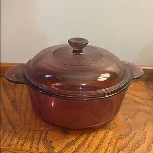 Purple Pyrex and Corning pieces are harder to find than standard clear or amber glass and are highly sought after by collectors. This is both a functional kitchen piece and a display-worthy vintage statement.