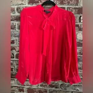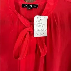 J.Crew Coral Pink Tie Neck Blouse ✨ NWT Silky Candy Apple Top Size 8
